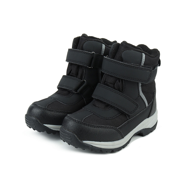 Утепленные зимние сапоги для мальчиков дошкольного возраста не только комфортные в носке и функциональные, но красивые и стильные. В изготовлении верха сноубутсов использована комбинация текстиля и искусственной кожи. Сочетание материалов обеспечит ногам сухость и тепло в процессе использования. Подошва изготовлена из термопластичной резины (ТПР), она легкая и не утяжеляет ботинок, а также препятствует скольжению. Подкладка и стелька утепленные и выполнены из мягкой шерсти. Обувь фиксируется на ноге с помощью широких липучек, они облегчают и ускоряют переобувание. Цвет обуви черный с вертикальной серебристой полосой, боковина подошвы черно-белая.