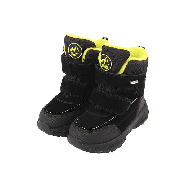 Эти утепленные сапоги (сноубутсы) для мальчиков отлично подойдут для активных зимних приключений. Выполненные в стильном черном цвете с яркими зелеными акцентами, они привлекают внимание и добавляют яркости в повседневные образы. Верх изготовлен из искусственной кожи и качественного текстиля, что придает обуви износостойкость и долговечность. Яркая подкладка из натуральной шерсти дарит комфорт и тепло ногам даже в самые холодные дни.