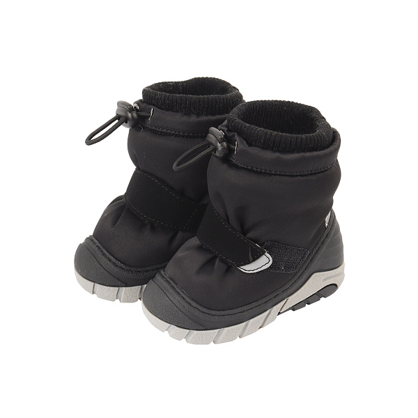 Детские утепленные сапоги (сноубутсы) созданы с учетом потребностей малышей в холодное время года. Внешний вид этих сапог выполнен в стильном черном цвете с серыми элементами, что позволяет легко сочетать их с различными нарядами, включая комбинезоны, теплые брюки и куртки.