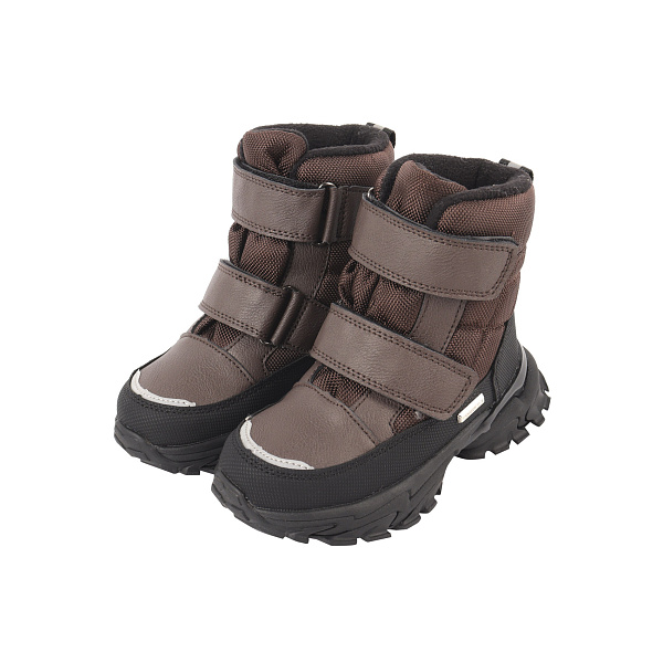Утепленные сапоги для мальчиков представлены в стильном коричневом цвете, выполнены из прочного текстиля и искусственной кожи. Эти сноубутсы украшены функциональными элементами в виде широких липучек, что обеспечивает легкость и удобство при надевании. Рельефная подошва из устойчивого к износу материала гарантирует хорошее сцепление, предотвращая скольжение даже на заснеженных и ледяных поверхностях.