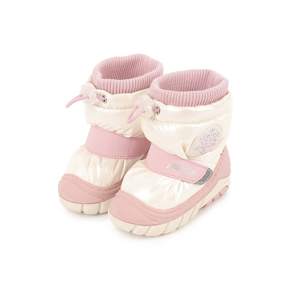 Эти бежевые утепленные сапоги (сноубутсы) для девочек ясельного возраста – отличный выбор для холодного времени года. Их привлекательный внешний вид создается благодаря нежному сочетанию бежевого и розового цветов. Очаровательная деталь в виде блестящей аппликации делает сапоги стильными и уютными.