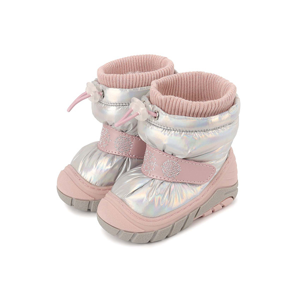 Утепленные сапоги-сноубутсы для девочек ясельного возраста – идеальный выбор для холодного времени года. Выполненые в нежных розово-серебряных тонах. Комбинация текстильной и искусственной кожи верхней части обеспечивает прочность и износостойкость, а внутренняя подкладка из натуральной шерсти (80%) и полиэстера (20%) создает комфорт и удерживает тепло даже в суровые зимние дни. Сапоги имеют специальную мембрану LANSON TEX, которая не пропускает влагу и ветер, но при этом позволяет ногам дышать, сохраняя их в сухости и тепле.