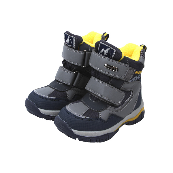Сапоги Pasito сноубутсы зимние утепленные на липучках сине-серые с желтыми вставками