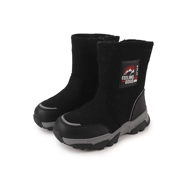 Черные валенки Pasito с аппликацией для мальчика – идеальная обувь для зимы. Верх из текстиля в сочетании с искусственной кожей обеспечивает долговечность и защиту от влаги. Подкладка и стелька на 80% состоят из шерсти, что гарантирует тепло и комфорт; 20% полиэстера добавляют прочность и износостойкость.