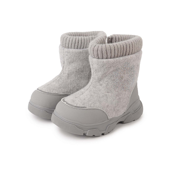 Прочная подошва из ТПР обеспечивает отличное сцепление с поверхностью и амортизацию. Съемная стелька позволяет быстро и легко сушить обувь после прогулок. Декоративный элемент в виде снежинки добавляет обуви элегантности и делает ее привлекательной для маленьких модниц.