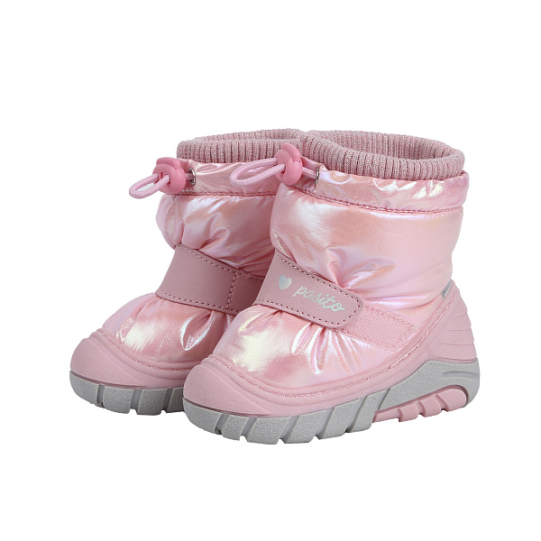 Красивые и утепленные зимние сноубутсы предназначены для маленькой девочки. Яркий розовый цвет с блестящим покрытием точно придется по душе юной моднице. Модель изготовлена из термо-текстиля со вставками из кожи, фиксируется на ноге с помощью прочной липучки, которая научит малыша обуваться без помощи взрослых. Сверху сапожки застегиваются с помощью утяжки и имеют вшитый манжет, поэтому ноги ребенка будут надежно защищены от холодного ветра или осадков. Прорезиненная подошва из ТПР имеет четко прорисованный протектор, поэтому малышка сможет бегать по дороге, не боясь поскользнуться. Стелька и подкладка изготовлены из шерсти.