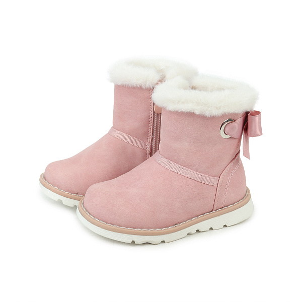 Уютные демисезонные сапожки из искусственной кожи нежно-розового цвета с белой меховой опушкой выглядят как сказочные. Аккуратная округлая форма колодки напоминает австралийские угги. Высокая застежка-молния позволяет обуть ребенка быстро, не причиняя малышу неудобств. Сапоги прошиты в зоне стыковки корпуса и подошвы.