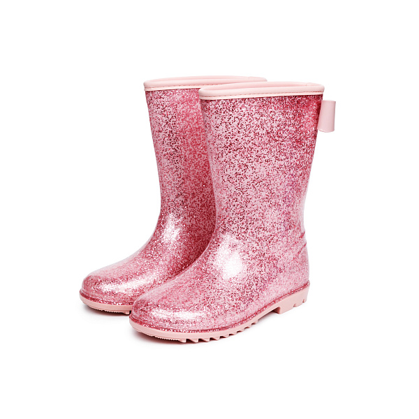 Розовые водонепроницаемые сапоги с блестками имеют нежный и изящный вид, поэтому они покажутся привлекательными маленьким любительницам прогулок под дождем. Такие сапоги бережно защищают ножки от проникновения влаги, даже если ребенок будет ходить по лужам.