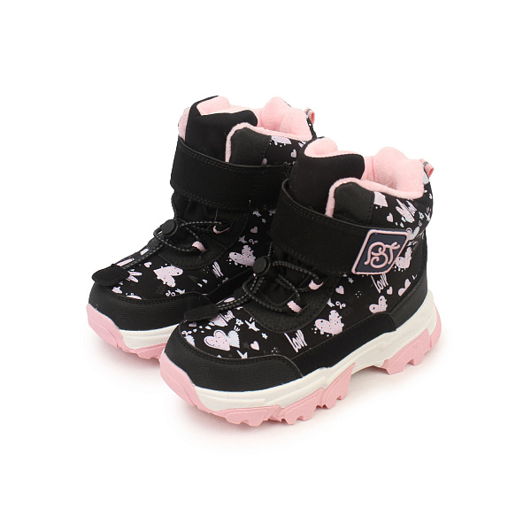 Сапоги Pasito зимние на липучке и шнуровке с фиксатором с принтом сердечек черные