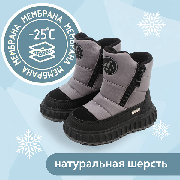 Сапоги Pasito зимние с мембраной съемная стелька из натуральной шерсти серые