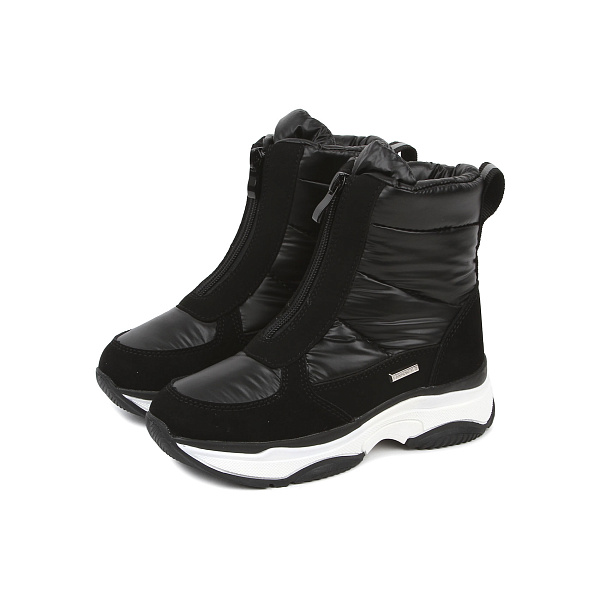 Сапоги сноубутсы Barbaris утепленные на молнии спереди с черно-белой подошвой черные