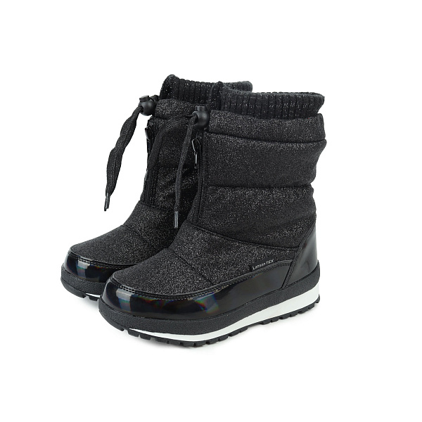 Теплые зимние сноубутсы идеально подходят для прогулок в снежное время года. Модель ориентирована на девочек дошкольного возраста, оформлена в практичном черном цвете. Отсутствие застежки упрощает процесс переобувания. Для регулировки полноты голенища имеется шнурок с фиксатором. Комбинированный верх изготовлен из искусственной кожи и текстильного материала. Стелька и подкладка содержат 30% шерсти. Они обеспечивают естественную циркуляцию воздуха, обладаю отменным теплоизолирующими свойствами. Подошва из ТПР не скользит на дорогах и не утяжеляет ботинок.