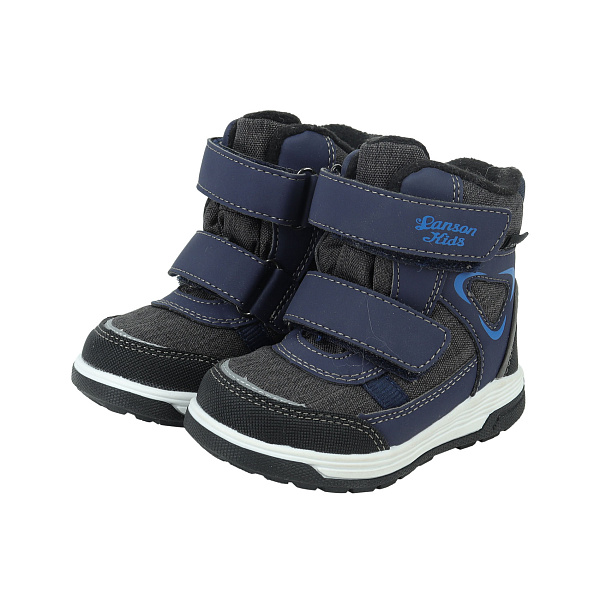 Теплые и удобные зимние сноубутсы предназначены для мальчика ясельного возраста. Они сохранят ноги ребенка в тепле и сухости в зимнюю пору. Зимняя модель привлекает внимание сочетанием темно-синего цвета с ярко-голубыми вставками. Две традициоными застежки-липучки помогают отрегулировать полноту и плотно зафиксировать ботинок. Для производства верха использована искусственная кожа и вставки из текстиля. Внутри находится подкладка из материала, содержащего 80% шерсти. Устойчивая подошва из термопластичной резины (ТПР) равномерно распределяет нагрузку на ногу и препятствует скольжению.