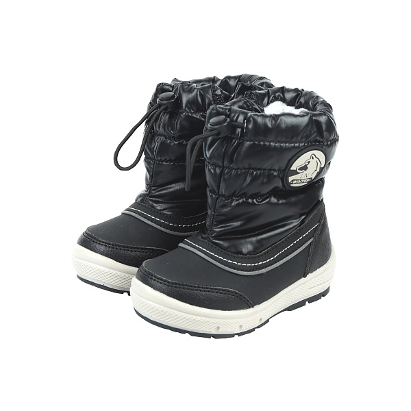 Утеплённые зимние сноубутсы согреют ножку малыша в снежную погоду, защитят от проникновения внутрь воды при таянии снега. Верх сноубутсов изготовлен из утеплённого текстиля в комбинации с искусственной кожей. Низ из эластичной, при этом прочной термопластичной резины (ТПР), материал препятствует скольжению и равномерно распределяет нагрузку. Подкладки и стельки в сапогах на 80% состоят из шерсти. Сноубутсы идеальны для прогулок в снежную стужу. Цвет чёрный.
