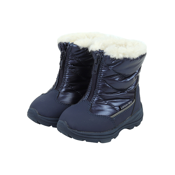 Удачным приобретением для зимнего сезона станут теплые зимние сноубутсы. Модель выполнена в синем цвете. Комбинированный верх из искусственной кожи дополнен элементами из текстиля. Для производства стельки и внутреннего слоя применяется материал, состоящий на 80% из шерсти. Удобная застежка-молния, расположенная в передней части упрощает переобувание. Устойчивая подошва из ЭВА не утяжеляет ботинок и препятствует скольжению.