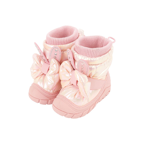 Сапоги сноубутсы Pasito утепленные на липучке с бантом и перламутровым эффектом розовые