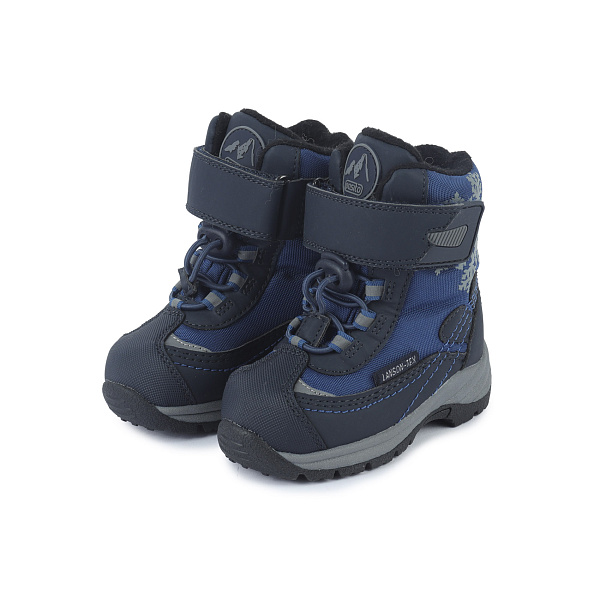 Синие высокие ботинки бренда «Pasito» с изображением серой снежинки порадуют вашего малыша и согреют его в морозы.