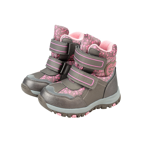 Зимние сноубутсы отлично подходят для прогулок в снежное время года. Сочетание кофейного и розового цвета позволяет вписать изделие в гардероб любой маленькой модницы. У модели удобная застежка в виде пары ремешков с липучками, которые упрощают переобувание. Комбинированный верх изготовлен из искусственной кожи с текстильными вставками. В составе подкладки и стельки присутствует 80% шерсти. Прочная подошва из термопластичной резины (ТПР) в меру упруга и устойчива, она препятствует скольжению и равномерно распределяет нагрузку. Приятным бонусом станет нашивка в форме сердечка.