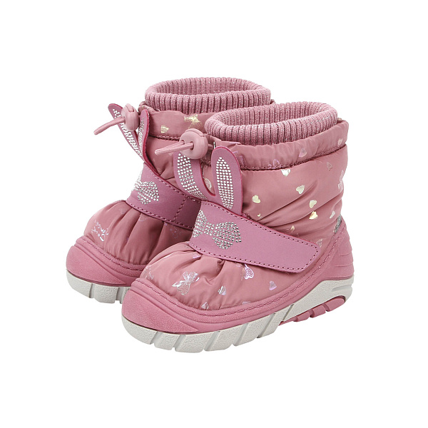 Сапоги сноубутсы Pasito утепленные на липучке с украшением стразы розовые