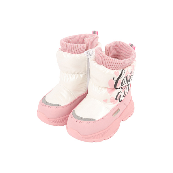 Сапоги сноубутсы Pasito утепленные на молнии бело-розовые