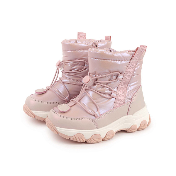 Розовые утепленные ботинки для девочки представляют собой идеальное сочетание стиля и комфорта. Верх изготовлен из искусственной кожи и текстиля, что придает им современный и аккуратный вид. Благодаря молнии, ботинки легко надеваются и снимаются, а шнуровка позволяет регулировать ширину для более плотной посадки.