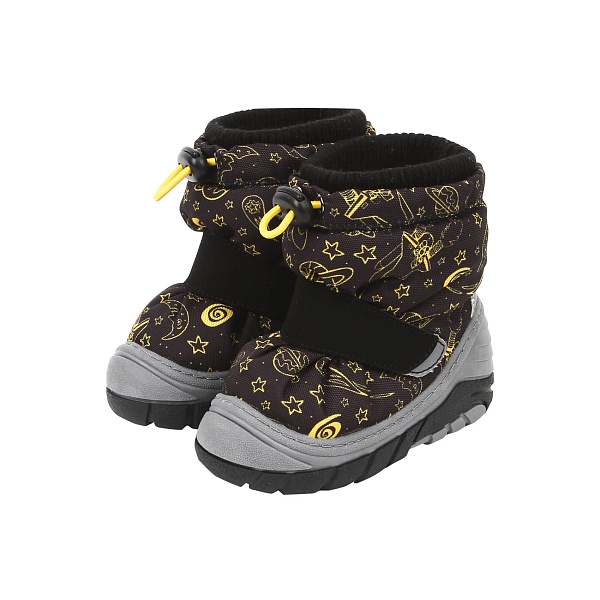 Сапоги сноубутсы Pasito утепленные с фиксатором на липучке с желтым принтом черные