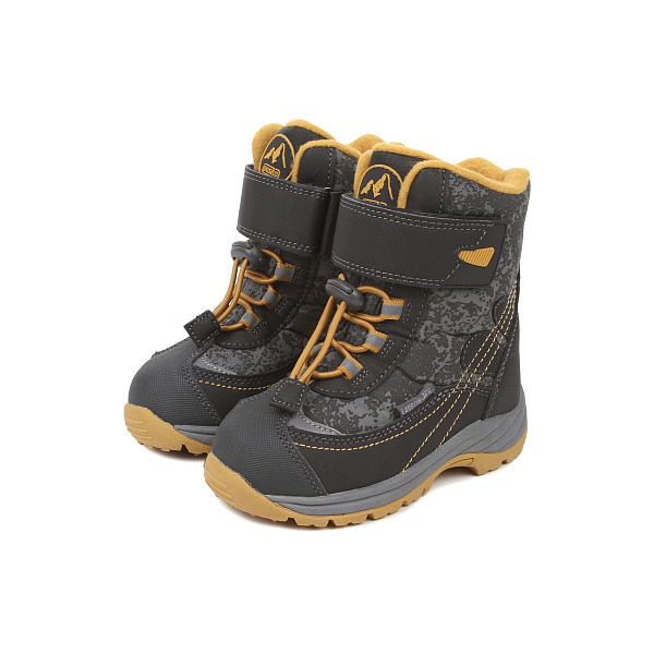 Сапоги сноубутсы Pasito утепленные с фиксатором на липучке с желтыми вставками серые