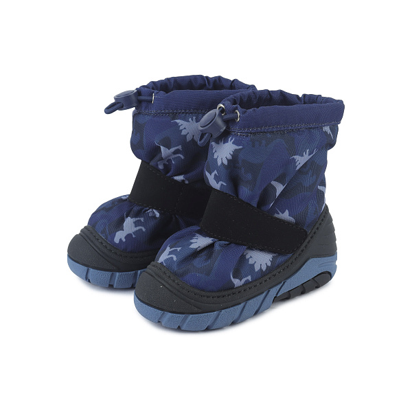 Сапоги сноубутсы Pasito утепленные с фиксатором принт динозавры темно-синие
