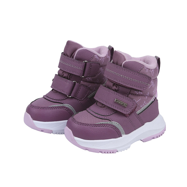 Стильная модель зимних утепленных сноубутсов предназначена для девочки ясельного возраста. Приятный фиолетовый цвет подойдет под любую верхнюю одежду малышки и станет ярким дополнением образа. Модель выполнена из искусственной кожи с текстильными вставками, в качестве внутреннего утеплителя использована шерсть. Стелька имеет супинатор, задник закрытый. Бело-розовая рельефная подошва из ТПР не скользит, поэтому ребенок может бегать без страха упасть. Обувь фиксируется на двух липучках, поэтому может регулироваться по объему и полноте ножки.