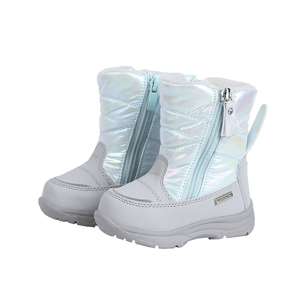 Яркие и привлекательные зимние сноубутсы предназначены для девочки младшего возраста и являются идеальным выбором для ежедневных походов в детский сад или на прогулку. Модель пошита из комбинации искусственной кожи и термо-текстиля, который гарантирует водонепроницаемость и комфорт ногам. В качестве застежки использована молния, поэтому обуваться малышка может самостоятельно без помощи родителей. Внутри подкладка и стелька утеплены шерстью. Стелька оснащена супинатором, а закрытый задник помогает правильному формированию свода стопы. Подошва выполнена из ТПР, материал препятствует скольжению и равномерно распределяет нагрузку на ноги.