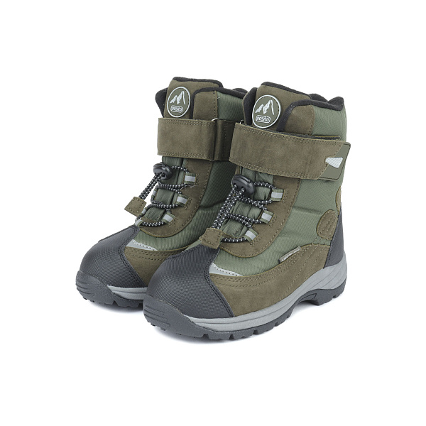 Комбинированный верх изготовлен из ткани и искусственной кожи. Дополнительные фигурные элементы расположены в местах, наиболее подверженных износу. Утеплитель и текстильная подкладка обеспечивают полноценное проветривание, хорошо сохраняют тепло.
