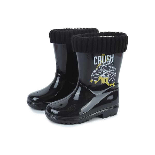 Сапоги водонепроницаемые Pasito Crush с рисунком машина с текстильной вставкой с вязаным отворотом черные