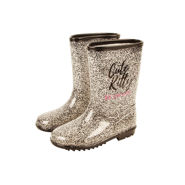 Сапоги водонепроницаемые Pasito Cute kitty by the way с блестками и черными крапинками с надписью бежевые