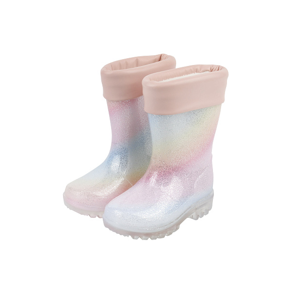 Резиновые сапоги Pasito с подкладкой отлично подходят для прогулок в весенне-осенний период и прохладным летом. Градиент в пастельных тонах с блестками делает пасмурный день более красочным и веселым. Сапоги надежно защищают ноги от влаги и грязи, сохраняя чувство тепла благодаря мягкой хлопковой подкладке. Это позволяет ребенку свободно играть на природе даже в ненастную погоду.