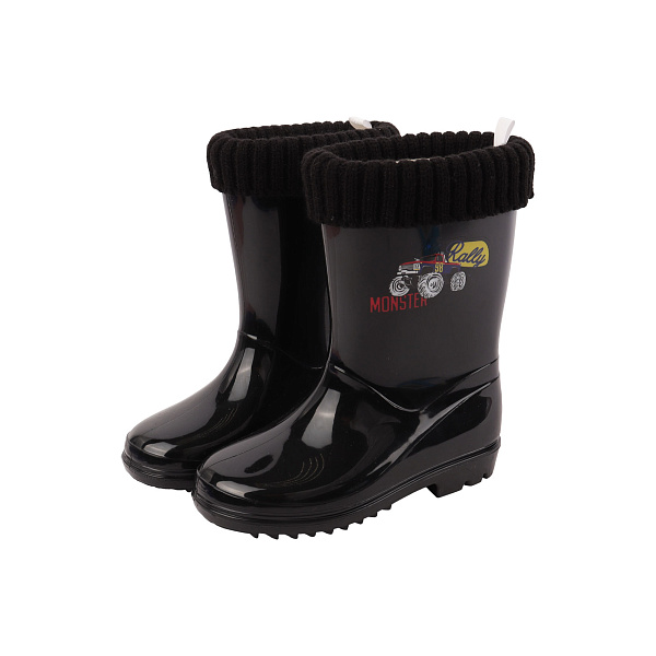 Цвет обуви - черный. На голенище имеется принт с изображением внедорожника.