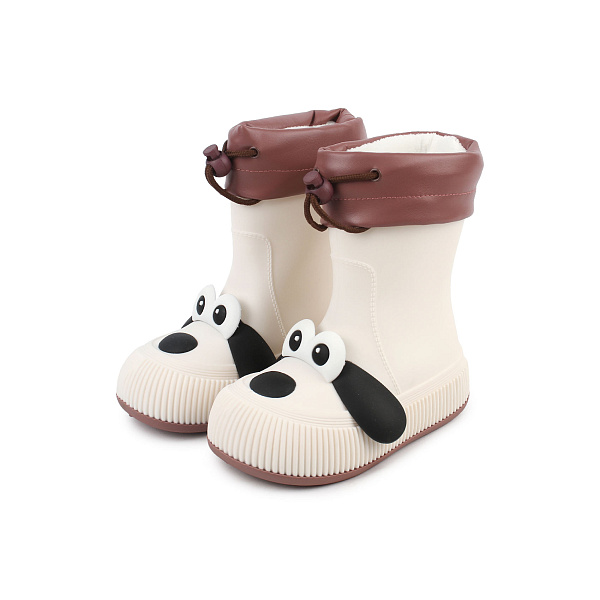 Сапоги водонепроницаемые Pasito с мордочкой песика и утепленной вставкой бежевые