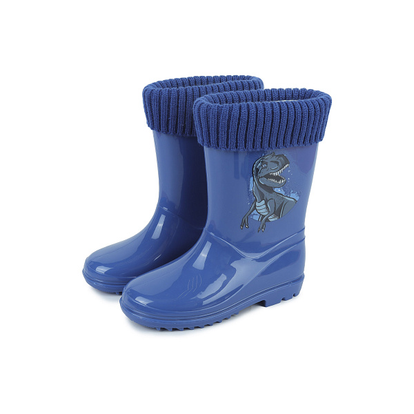 Сапоги водонепроницаемые Pasito с рисунком динозавр с текстильной вставкой с вязаным отворотом синие