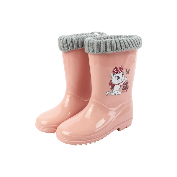 Цвет изделия - розовый, на голенище имеется принт с изображением кошечки.