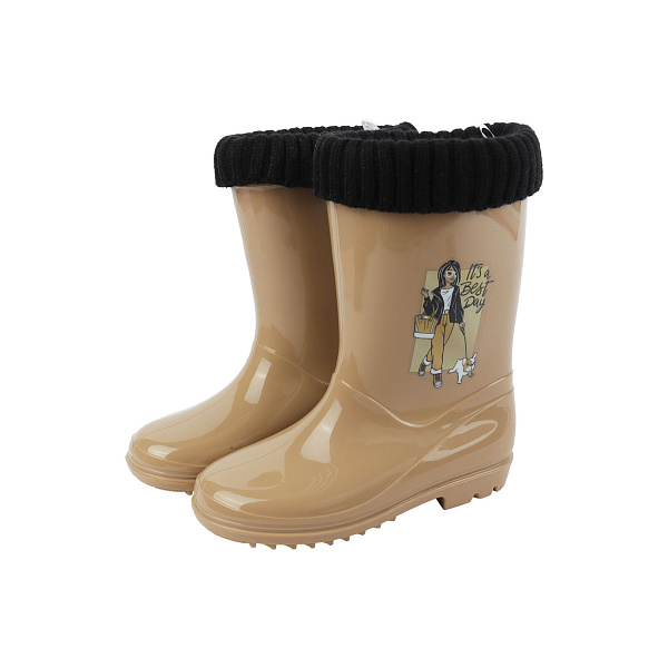 Материал верха и подошвы – ПВХ. Это водонепроницаемый полимер, распространенный в производстве демисезонной обуви. Трикотажные подкладка и стелька изготовлены из смеси хлопковой ткани и полиэстера в соотношении 80 к 20%. Поскольку ПВХ обладает отличной теплопроводностью, такой состав стельки и подкладки помогает сохранить ноги в тепле. Подошва с невысоким каблуком и рифлением сохраняет от скольжения.
