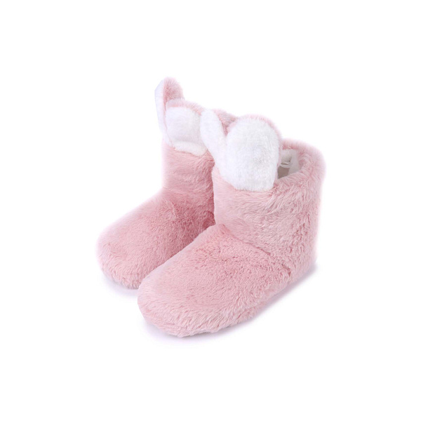 Эти домашние сапожки для девочек выполнены в нежно-розовом цвете и украшены забавными белыми ушками, что придает им очаровательный и игривый вид. Мягкий искусственный мех внешней стороны создает ощущение уюта и комфорта, идеально подходя для холодных зимних вечеров дома.