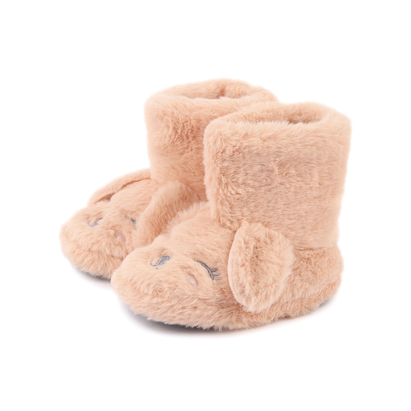 Удобные и мягкие домашние сапожки выполнены в нежном розовом цвете с милой мордашкой зайчика и висящими ушками. Верх изделия выполнен из текстиля, а подкладка и стелька из 80% хлопка обеспечивают отличную вентиляцию и впитывание влаги. Термопластичная резиновая подошва предотвращает скольжение, обеспечивая безопасность при ходьбе по дому.