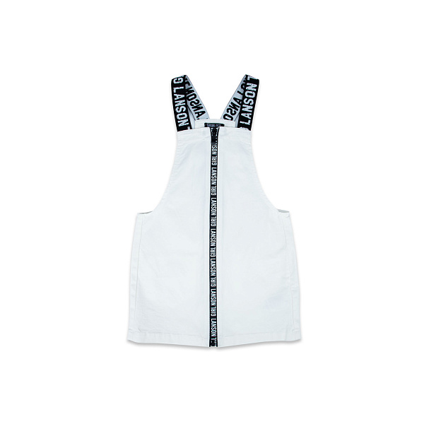 Белый сарафан Lanson kids с контрастными черными лямками понравится родят, которые не любит рюшки и бантики. Средняя длин сарафана не стесняет движения во время игр. В составе ткани использована джинса, такая ткань хорошо пропускает воздух и не дает коже потеть. Задняя часть сарафана дополнена двумя вместительными карманами, куда можно сложить сладости или монетки. Центральная часть санафана украшена черной полосой в тон в лямкам - под этой полосой скрывает молния, которая позволяет легко переодеться.