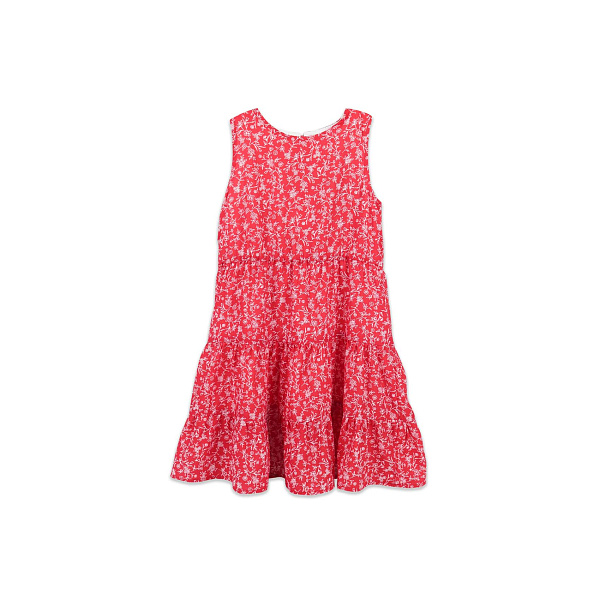 Сарафан красного цвета с белым цветочным рисунком понравится не только маме, но и маленькой моднице. Свободная посадка дарит удобство и комфорт. Расположенный сзади вырез-капелька застегивается на пуговицу. Трехярусная нижняя часть сарафана смотрится очень стильно и не ограничивает движений ребенка.