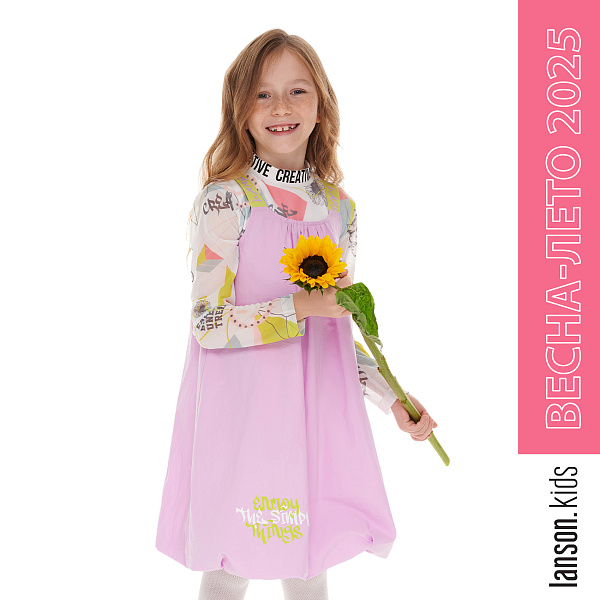 Сарафан Lanson Kids легкий с надписью в нежно-сиреневом цвете