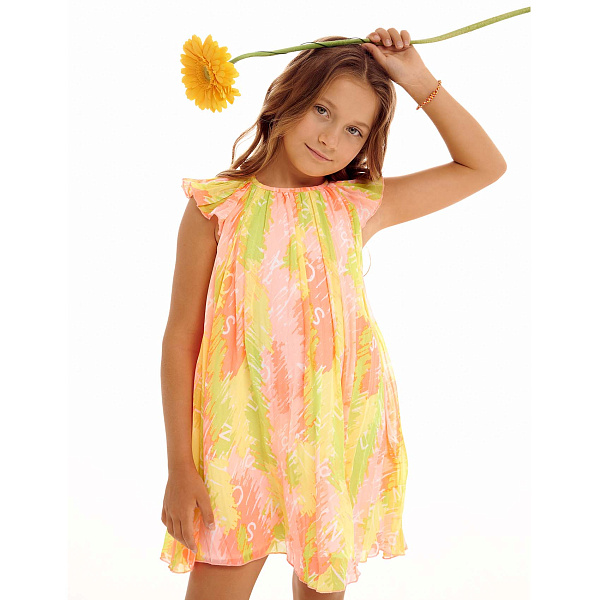 Летний плиссированный сарафан в ярких летних цветах подойдет как для праздничного события, так и на каждый день. У него свободный крой, который не сковывает движения и не мешает веселым детским играм. Есть небольшие рукава, прикрывающие плечи.