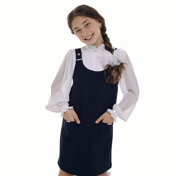 Удобный и практичный сарафан – важнейший элемент гардероба девочки-школьницы. В комплекте с белой кофточкой или водолазкой он будет отлично смотреться на любой фигуре. Такая одежда полностью соответствует требованиям к школьной униформе.
