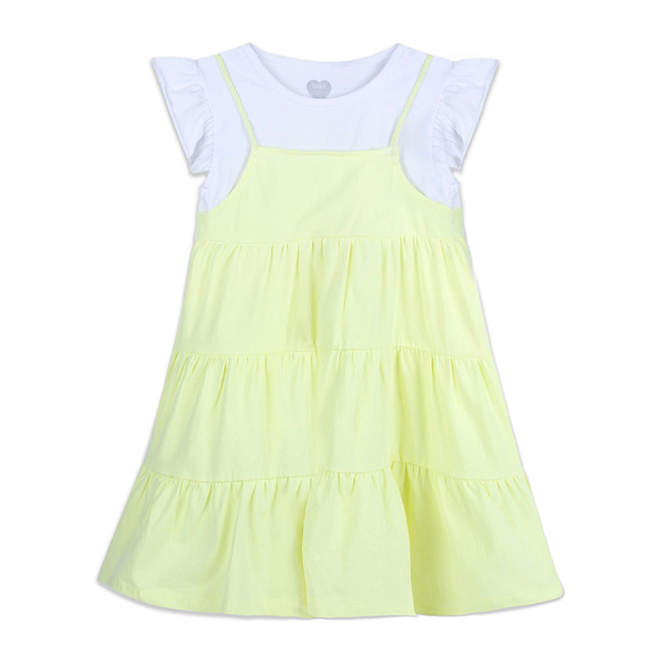 Изделие сшито из трикотажного полотна, в составе которого присутствует 95% натурального хлопка и 5% эластана. Материал обладает отменными характеристиками. Он не мнется, не перекрывает естественный тепло и воздухообмен, не растягивается. Наряд органично впишется в летний гардероб малышки, будет особенно востребован в жаркую погоду. Он не требует сложного ухода, легко отстирывается, быстро сохнет.