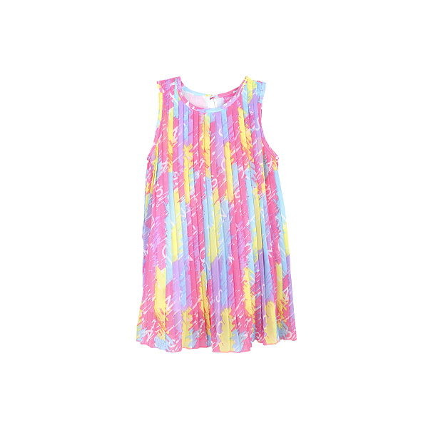 Изделие оформлено в ярких тонах с чередованием красного, желтого, фиолетового, розового и синего цветов. В таком сарафане девочка будет не только защищена от зноя, но и почувствует себя настоящей красавицей.