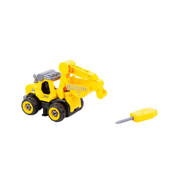 Игровой набор для сборки экскаватора своими руками чудесно пойдет для малышей, которые проявляют интерес к машинам и строительной технике. Игрушка полностью функциональна в собранном виде, она легко ездит и загребает ковшом песок. В комплект входит отвертка, чтобы закручивать и раскручивать соединительные болты. Такой конструктор станет чудесной тренировкой для координации движений и моторики рук, а также памяти и усидчивости ребенка. Деталей экскаватора не так много, чтобы перепутать их местами. Конструктор оффектно развивает логику и сообразительность. Рекомендовано для детей старше 3 лет.