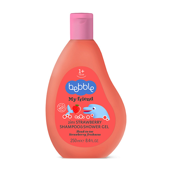 Средство со вкусом спелой клубники мягко очищает кожу и волосы, облегчая расчесывание. Перед применением вспеньте небольшое количество средства в руках и нанесите на волосы и тело ребенка, тщательно смойте чистой водой. Подходит для ежедневного применения. Упаковка представляет собой пластиковый флакон объемом 250мл кораллового цвета.